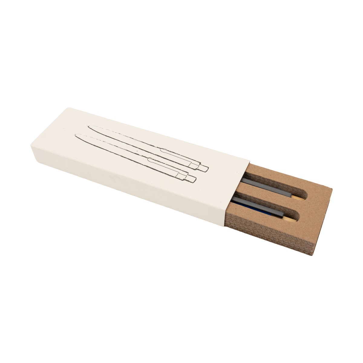 Zestaw piśmienny długopis półżelowy i ołówek automatyczny z aluminium z recyklingu SIEGFRIED to znakomity wybór dla marek, które pragną połączyć elegancję z troską o środowisko. Ten kompaktowy gadżet wykonano z aluminium pochodzącego z recyklingu oraz bambusa, a cały komplet zapakowano w ekologiczne pudełko – już samo opakowanie podkreśla jego charakter reklamowy. Dzięki gładkiemu, satynowemu wykończeniu powierzchnia świetnie eksponuje Twoje logo lub personalizowany nadruk, co czyni zestaw prawdziwą wizytówką dla Twojej firmy. 🙂
