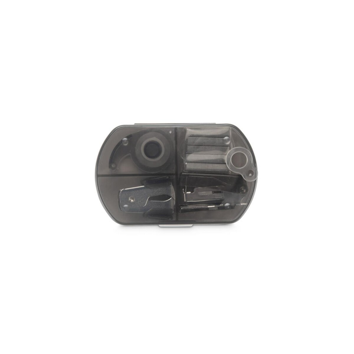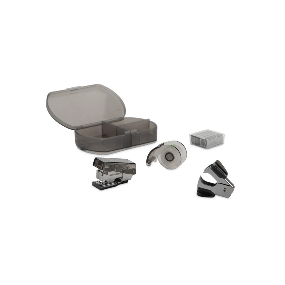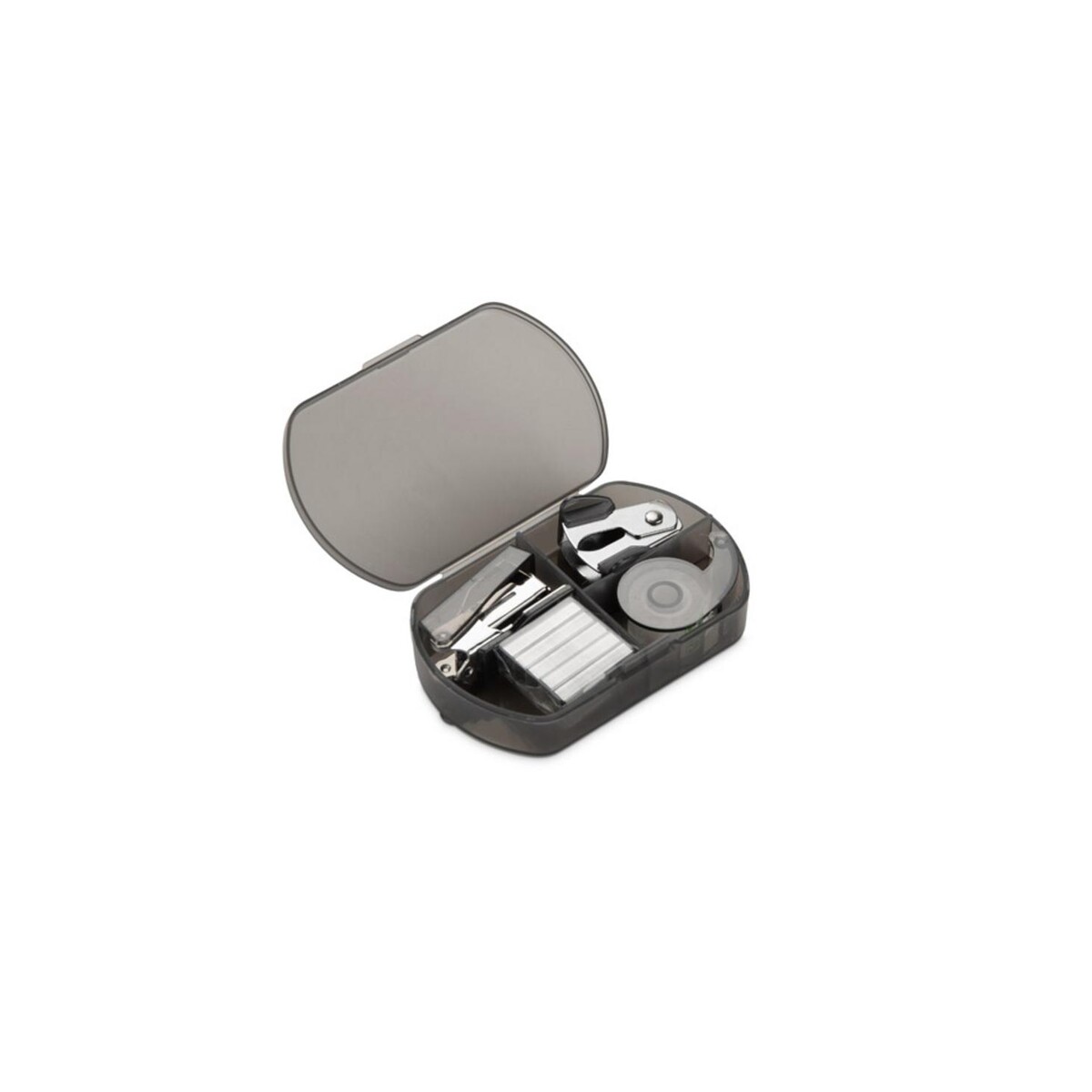 Zestaw przyborów biurowych DOCSY to kompaktowy, lecz niezwykle funkcjonalny gadżet, który wprowadzi porządek i profesjonalizm na każde biurko 😊. W środku poręcznego etui znajdziesz mini zszywacz, mini dziurkacz, taśmę klejącą oraz zapas zszywek – elementy niezbędne zarówno podczas codziennej pracy, jak i w trakcie wyjazdów służbowych. Wszystko zamknięto w eleganckim, czarnym futerale o wymiarach 58 x 91 x 20 mm i masie zaledwie 62 g, dzięki czemu bez trudu zmieścisz go w torebce, plecaku czy nawet kieszeni marynarki.