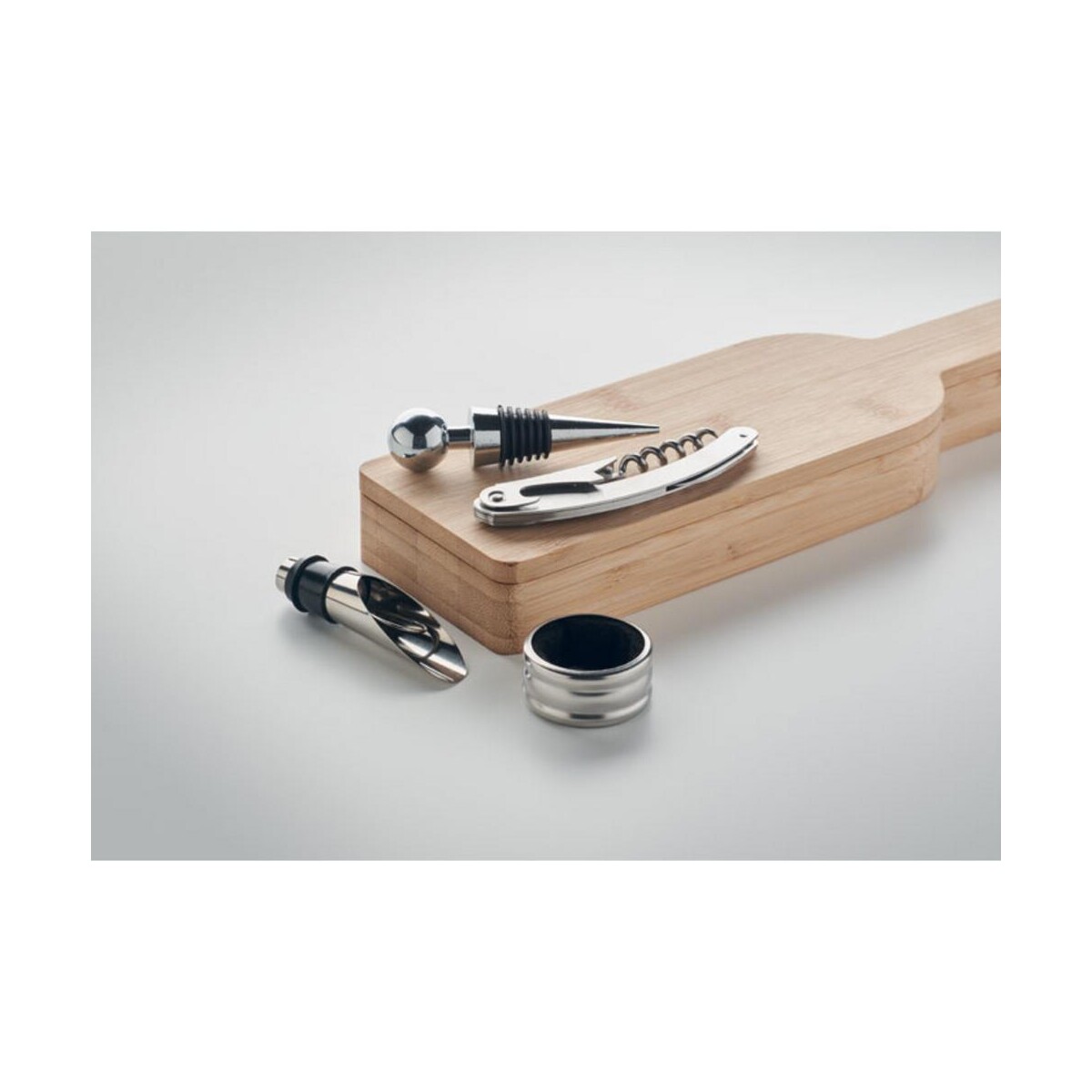 Zestaw w kształcie butelki VINOVAULT SET to gadżet stworzony z myślą o koneserach wina, którzy cenią sobie nie tylko funkcjonalność, lecz także estetykę bambusowego wykończenia. Ukryty w eleganckiej obudowie przypominającej butelkę, zawiera komplet czterech niezbędników: korkociąg, nalewak, zatyczkę oraz pierścień zabezpieczający krople. Dzięki wymiarom 29×8.5×3 cm i wadze zaledwie 0,600 kg łatwo zmieści się w torbie sommeliera czy na półce domowej kolekcji. Naturalny, drewniany charakter bambusa sprawia, że całość prezentuje się wyrafinowanie, a jednocześnie doskonale eksponuje firmowe logo w technice grawerowania lub trwałego nadruku. 🍷